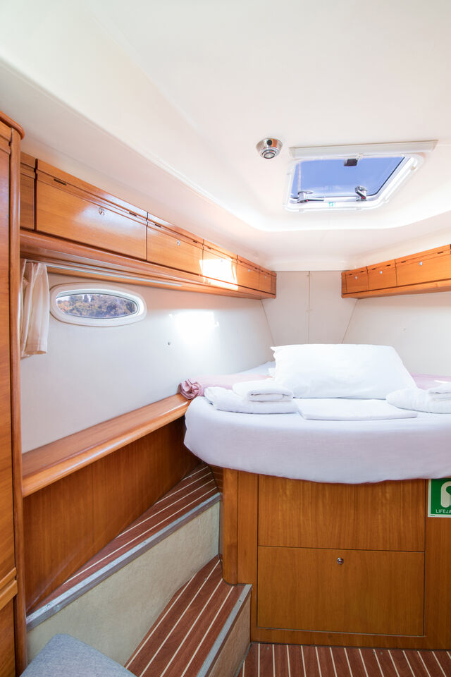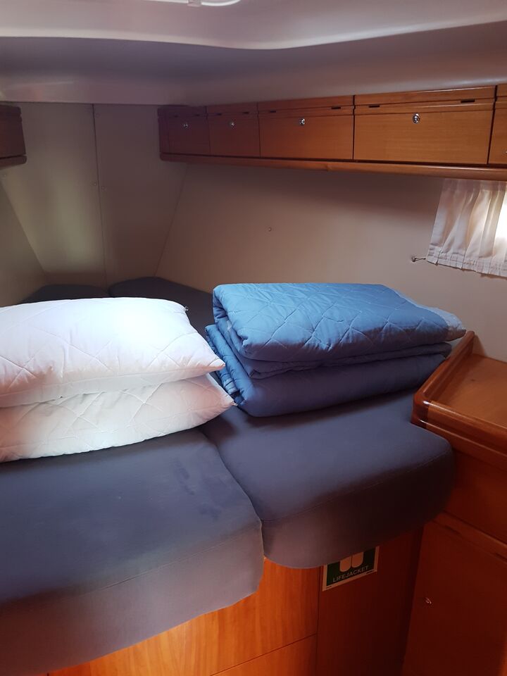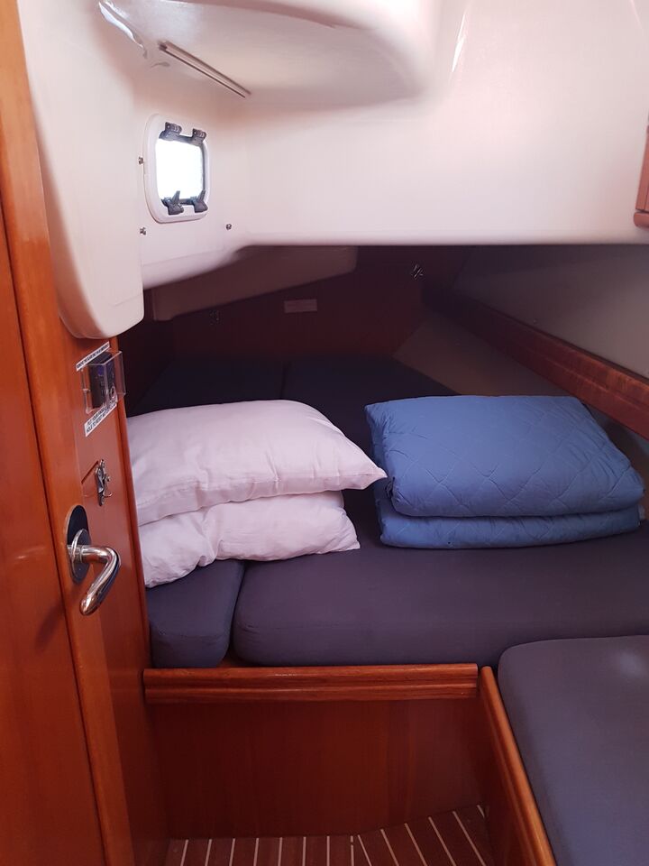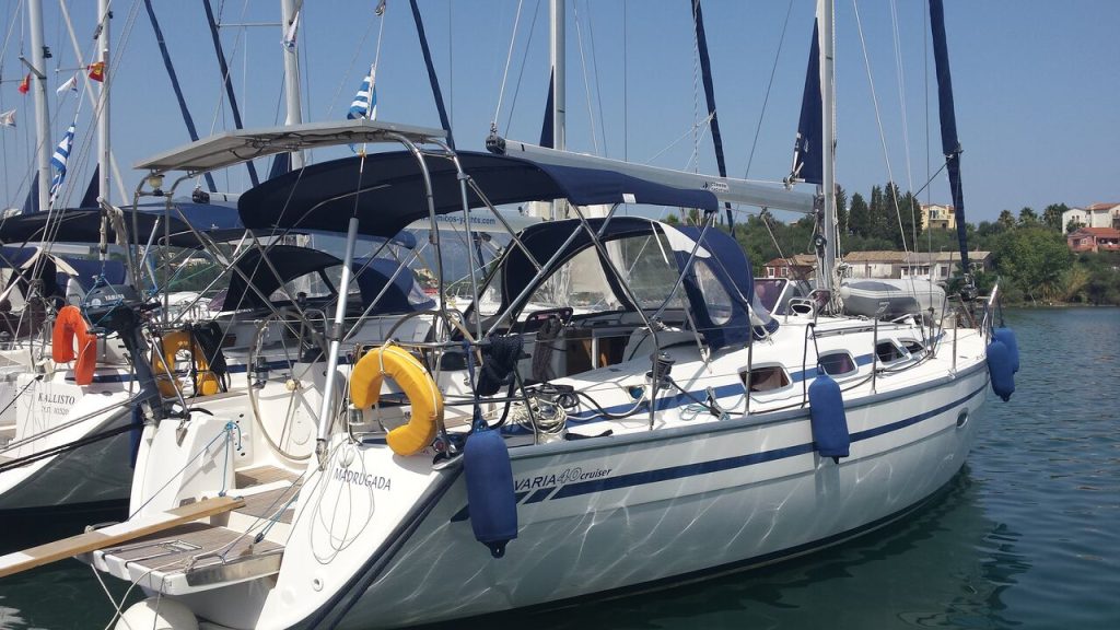 sprayhood, fenders, dinghy with motor, deck hatch, bimini top, bathing ladder