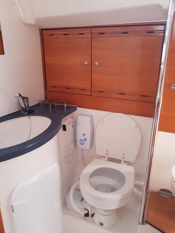 warm water system, tool kit, shore supply 220V, pressurized water system, engine battery, anchor windlass electric, battery charger, battery, anchor chain, anchor
